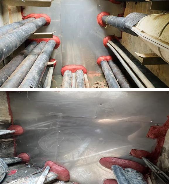 The following is an application case of fire blocking in a cable trench tunnel in Xiamen: First, the fireproof board is cut into the required size and shape, and fixed with steel nails; FST8079 flexible organic plugging material is filled in the cable penetration hole and a layer of FST8076 fireproof sealant is applied to the outer layer of the organic plugging material. After the sealant is cured, a hard protective layer can be formed, which plays a double fire protection role.